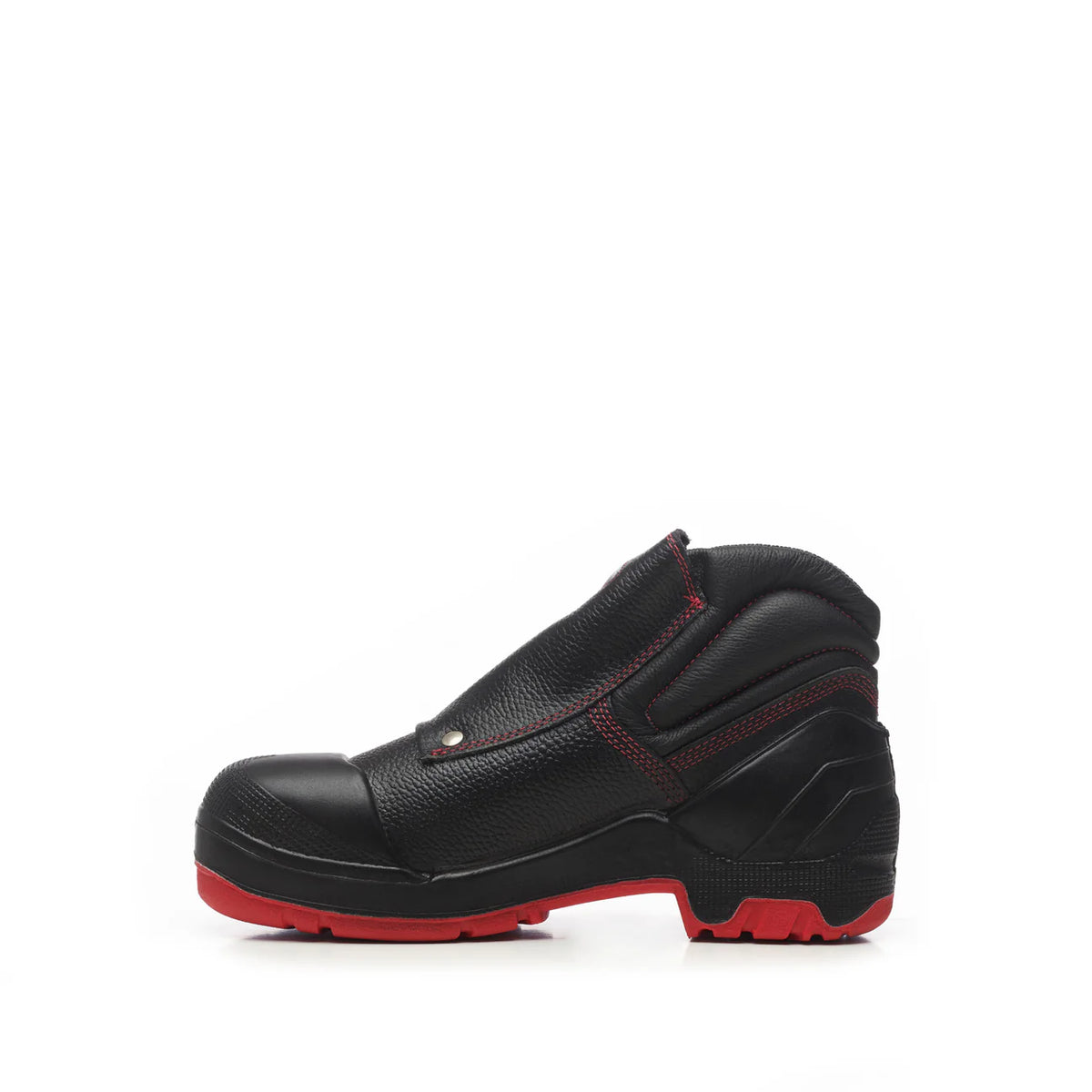 Este modelo destaca-se pela biqueira e palmilha de proteção em aço, oferecendo máxima segurança contra impactos, compressões e perfurações, aliada a materiais resistentes e soluções ergonómicas.