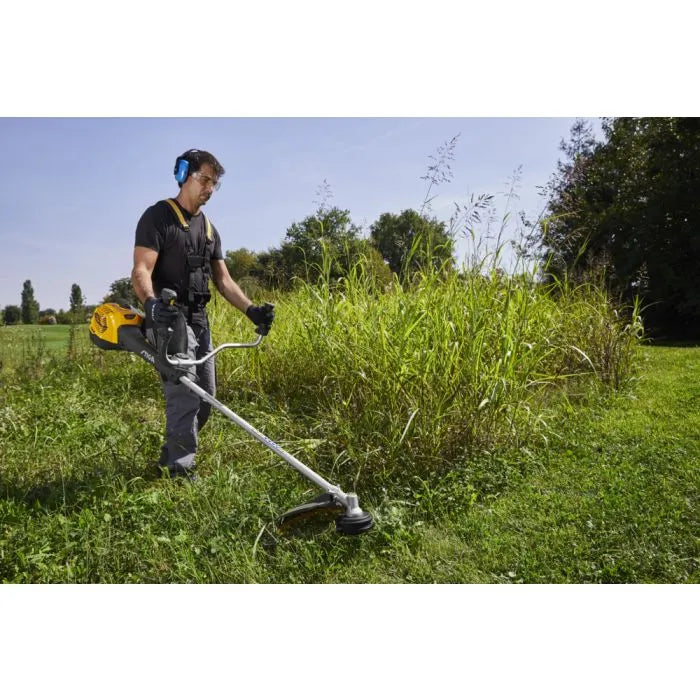 Equipada com um motor a gasolina de 52,8 cc (1,7 kW), oferece potência e fiabilidade para cortes intensivos. O guiador duplo tipo bicicleta assegura ergonomia e precisão, permitindo trabalhar confortavelmente em grandes áreas.